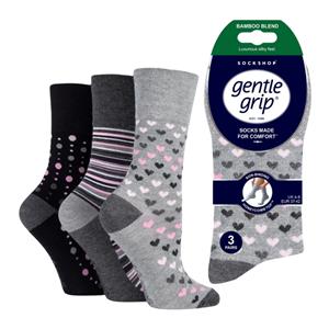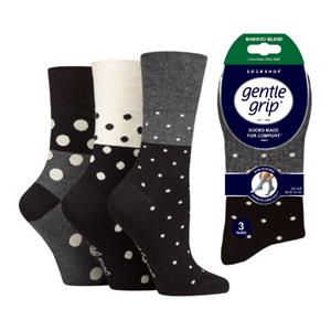 Ladies’ Gentle Grip Mono Spots Bamboo Socks – 3 pack – Size 4-8