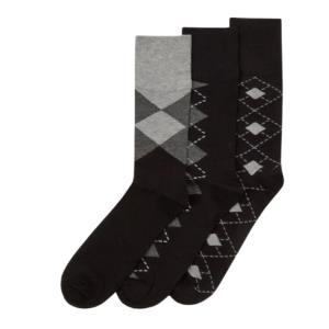 Men’s Bamboo Comfort Fit Socks 3 pack Grey Argyle Size 6-11